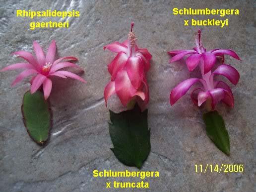 Schlumbergera x buckleyi, un ibrido tra S. russelliana e S. truncata prodotto nel tardo '800 da un vivaio inglese (spesso come sinonimo si trova il nome: Schlumbergera bridgesii).