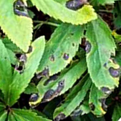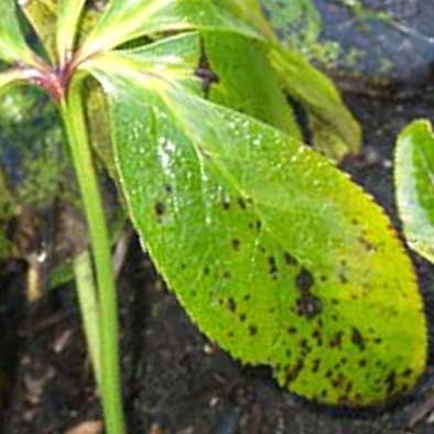 -piccole macchie nere irregolari che unite formano macchie più o meno regolari (Coniothyrium dell'Elleboro) - Tagliare le prime foglie si formano contro il terreno. Ciò aiuta a prevenire questa malattia.  Come tutti i funghi è favorito da terra troppo umida e forte piovosità. Parte del problema è la crescita di alberi o arbusti intorno alla zona che impediscono all'aria di circolare.