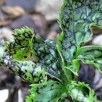 -striature nere seguite da totale annerimento della foglia (Necrosi dell'Elleboro) - Non è curabile: distruggere la pianta infetta immediatamente per ridurre il rischio di diffusione.