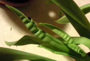 e se l'umidità è troppo bassa o l'acqua è insufficiente (pieghe sulle foglie in via di sviluppo ancora immature a fisarmonica orizzontale).