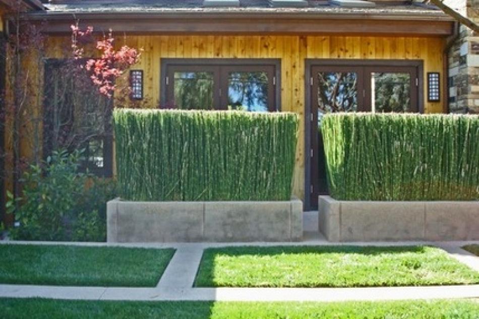 Se preferiamo optare per linee geometriche ed eleganti nella loro semplicità, useremo del Carex morrowii, il quale non ha bisogno di alcun tipo di potatura, oppure del Ligustrum sinense da sagomare ad arte, dell’Equisetum hyemale o del bambù nano; magnifico del colore dell’oro Pleioblastus viridistriatus. Anche queste due ultime specie si possono tagliare per ottenere linee divisorie di siepe più nette.