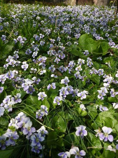 All'Orto Botanico di Brera (Mi) ho visto un bellissimo gruppo di Viola obliqua, piante erbacee stolonifere, tappezzanti perfette che coprono senza fatica nè manutenzione vaste aree di terreno.