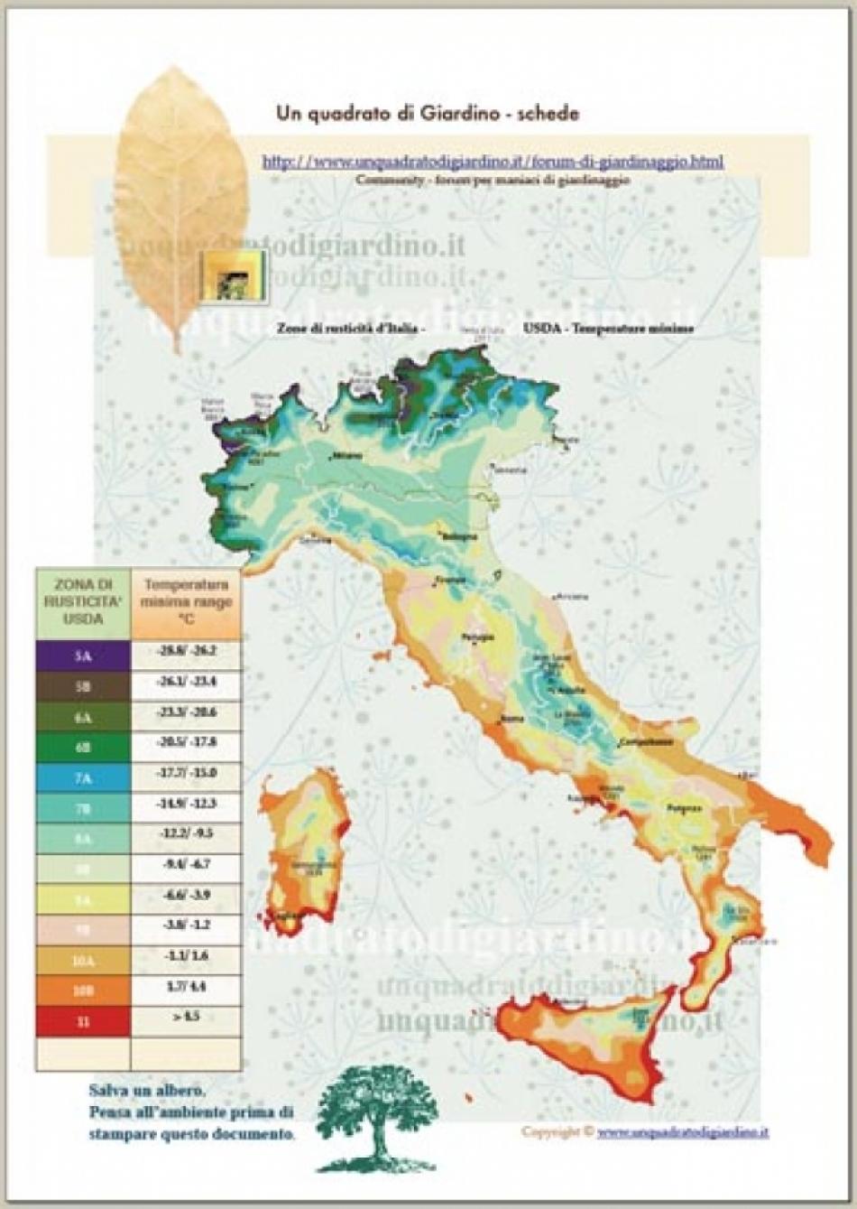 Da notare che molti grandi aree urbane creano una zona più calda della campagna circostante; poi anche se Firenze, Perugia e Ancona sono nella stessa zona 9b, i climi locali sono notevolmente diversi (a siti che possono avere i minimi nella stessa media invernale, ma marcatamente differenti temperature estive, sarà comunque accordata la stessa zona di rusticità).