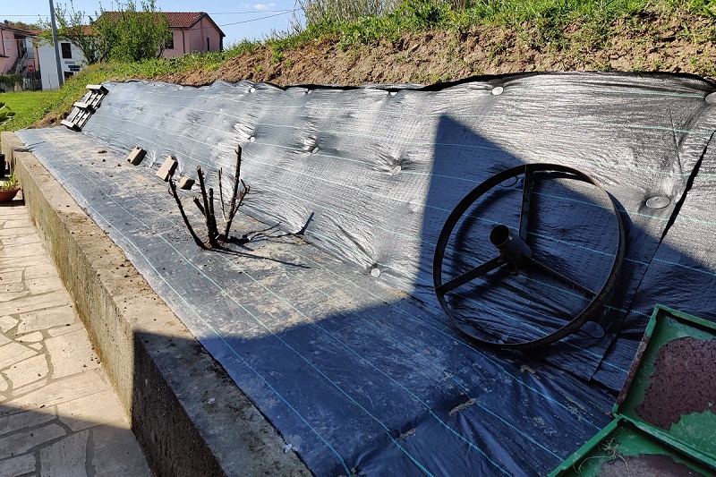 Buongiorno a tutti, vorrei dei consigli su che piante mettere su questa rampa. Abito in Liguria, al confine con la Toscana. La zona è esposta al sole durante l'estate mentre in inverno un parte prende qualche ora di sole mentre l'altra è sempre in ombra (la lunghezza totale è di circa 12/15 metri). Dall'altra parte della rampa c'è un canale però i lati sono in cemento. Il terreno è pieno di sassi e abbastanza franoso, è per quello che ho steso il telo pacciamante. Vorrei qualcosa di tappezzante che non sia la solita macchia mediterranea, mi piacerebbe anche un pò di colore (non vorrei più vedere il nero del telo). Metterò sicuramente del rosmarino ricadente. Spero di avervi dato abbastanza informazioni. Grazie a tutti