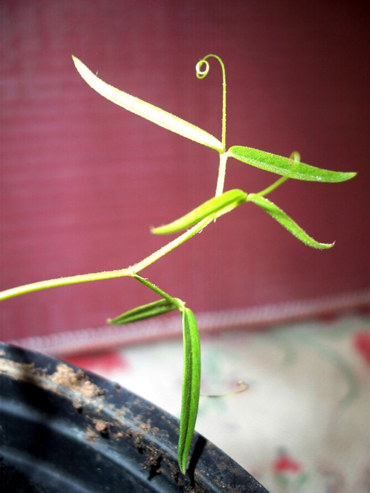 Però ho appena visto il Lathyrus odoratus (pisello odoroso) e ha le foglio un pò più larghe, ma dai viticci sembra lei..forte magari, la mia piantina, è una specie della stessa famiglia?
