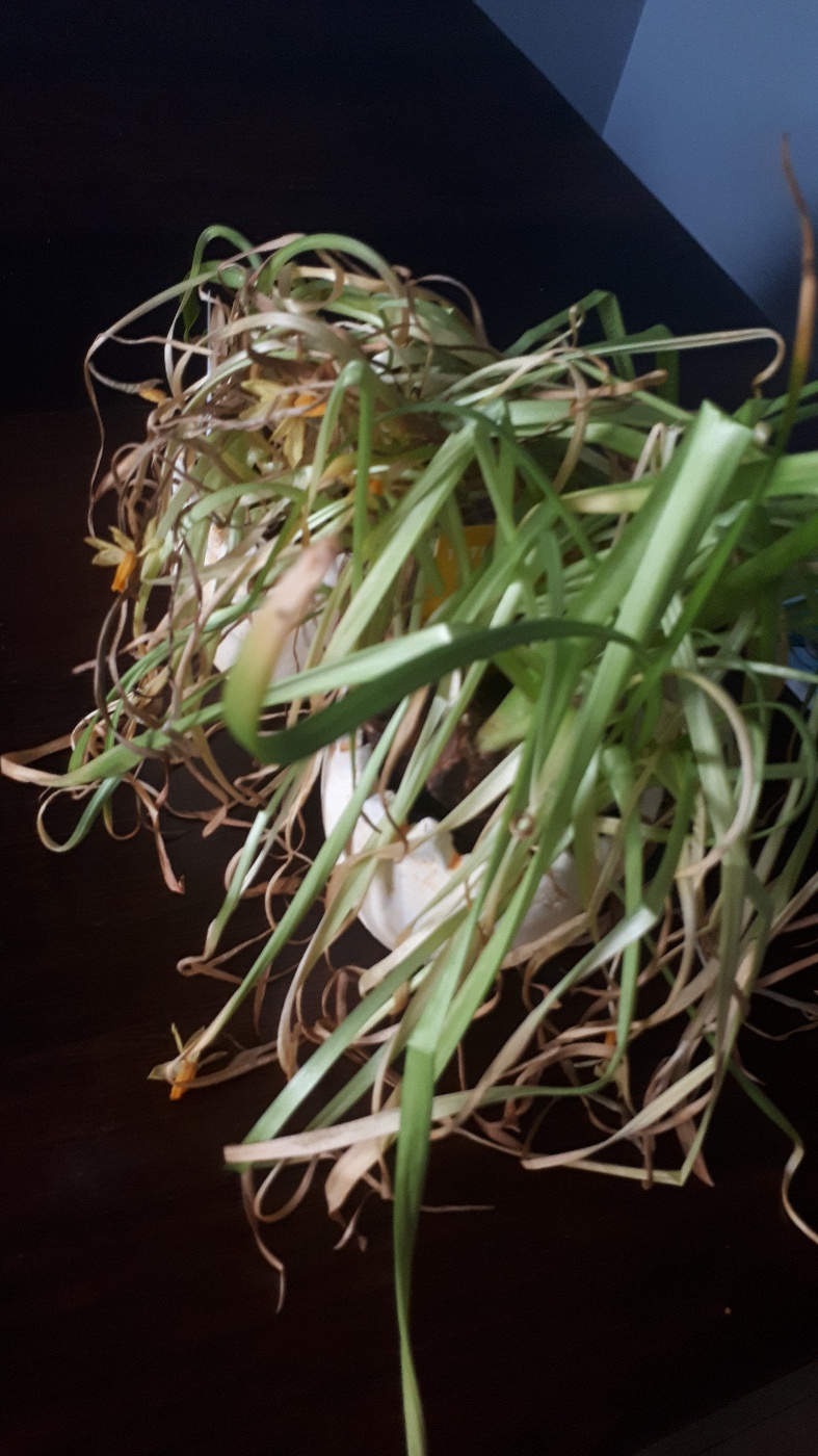 Vanno piantarti subito, semplicemente. Non tagliare le foglie perché finché sono verdi fanno fotosintesi clorofilliana ingrossando il bulbo.