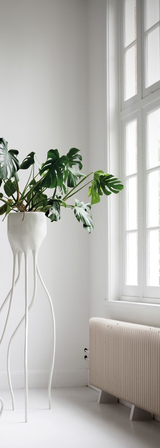 Colonne portavasi ce ne sono di vari tipi, l'importante è che la pianta stia nella luce della finestra. Piuttosto che abbassare le serrande (il che equivale a buio totale) devi mettere una tenda leggera che schermi il sole diretto. Gli ombrai delle piante per farti paragone sono al 35%, al 50%, al 70% e al 90%. Non metterei una densità maggiore di 50% e la pianta contro la finestra.