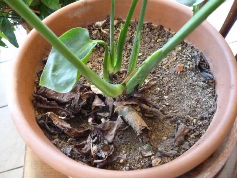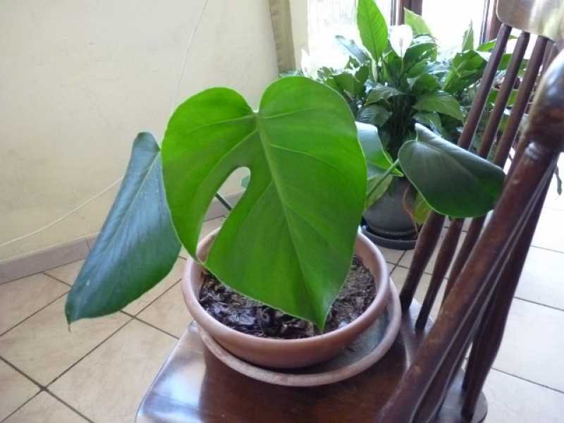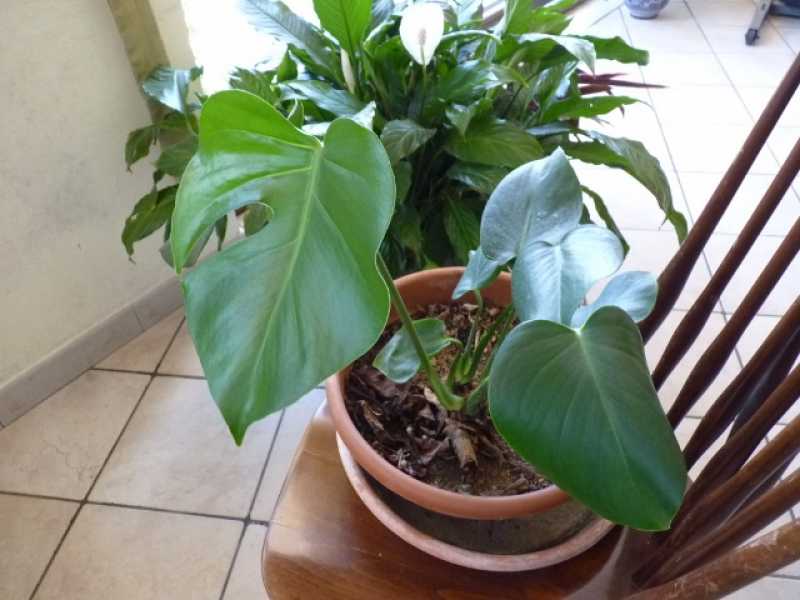 Monstera deliciosa sin. Philodendron pertusum-Filodendro con foglie secche