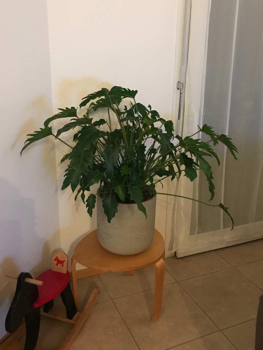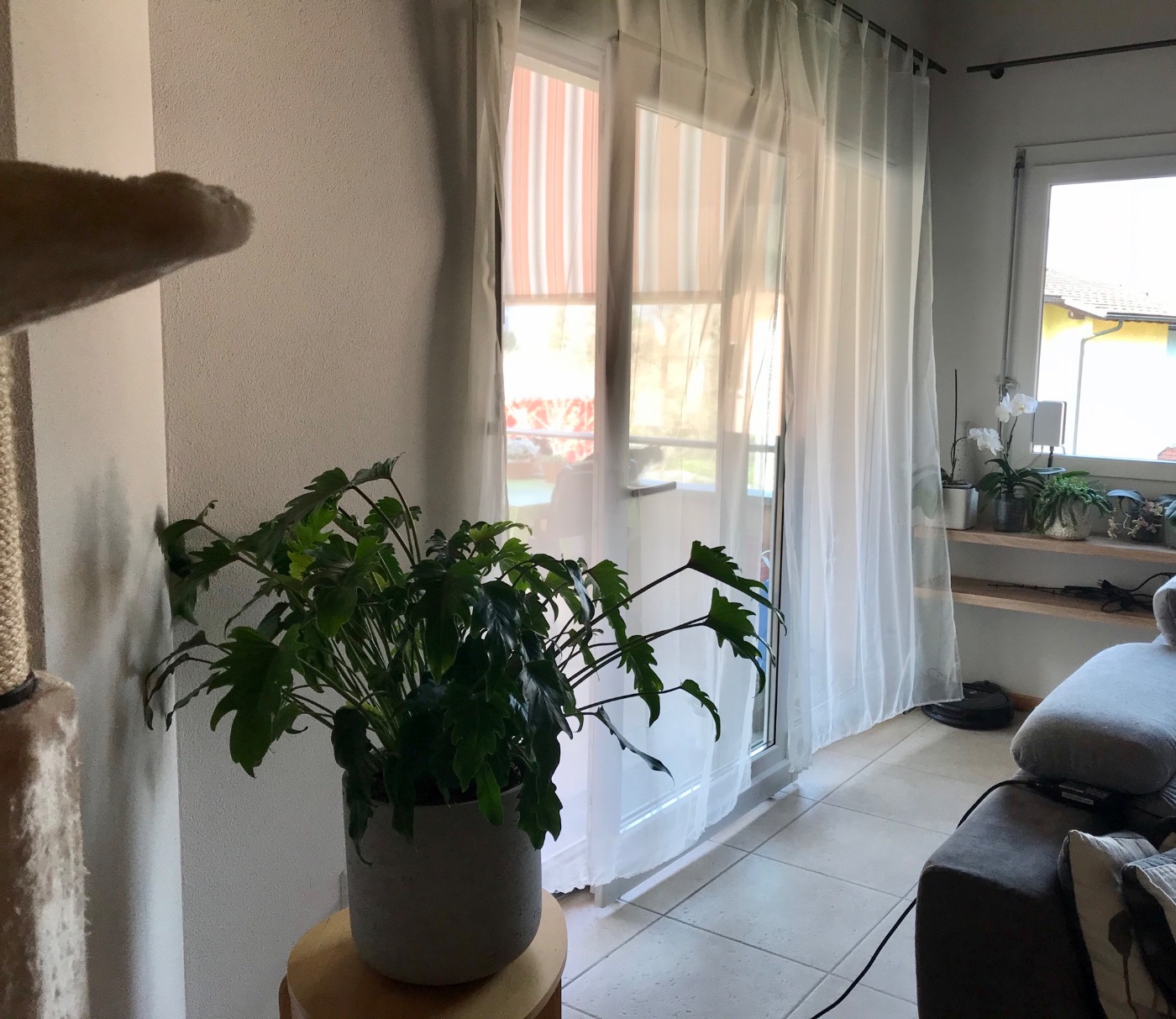 Come consiglio anzi come esigenza necessaria alla pianta per non degenerare nel tempo è di spostarla più davanti alla finestra, quindi più verso destra, lì e nell'angolo fuori dall'azione diretta della luce. Mi raccomando però che non prenda sole direttamente che può scottare le foglie.