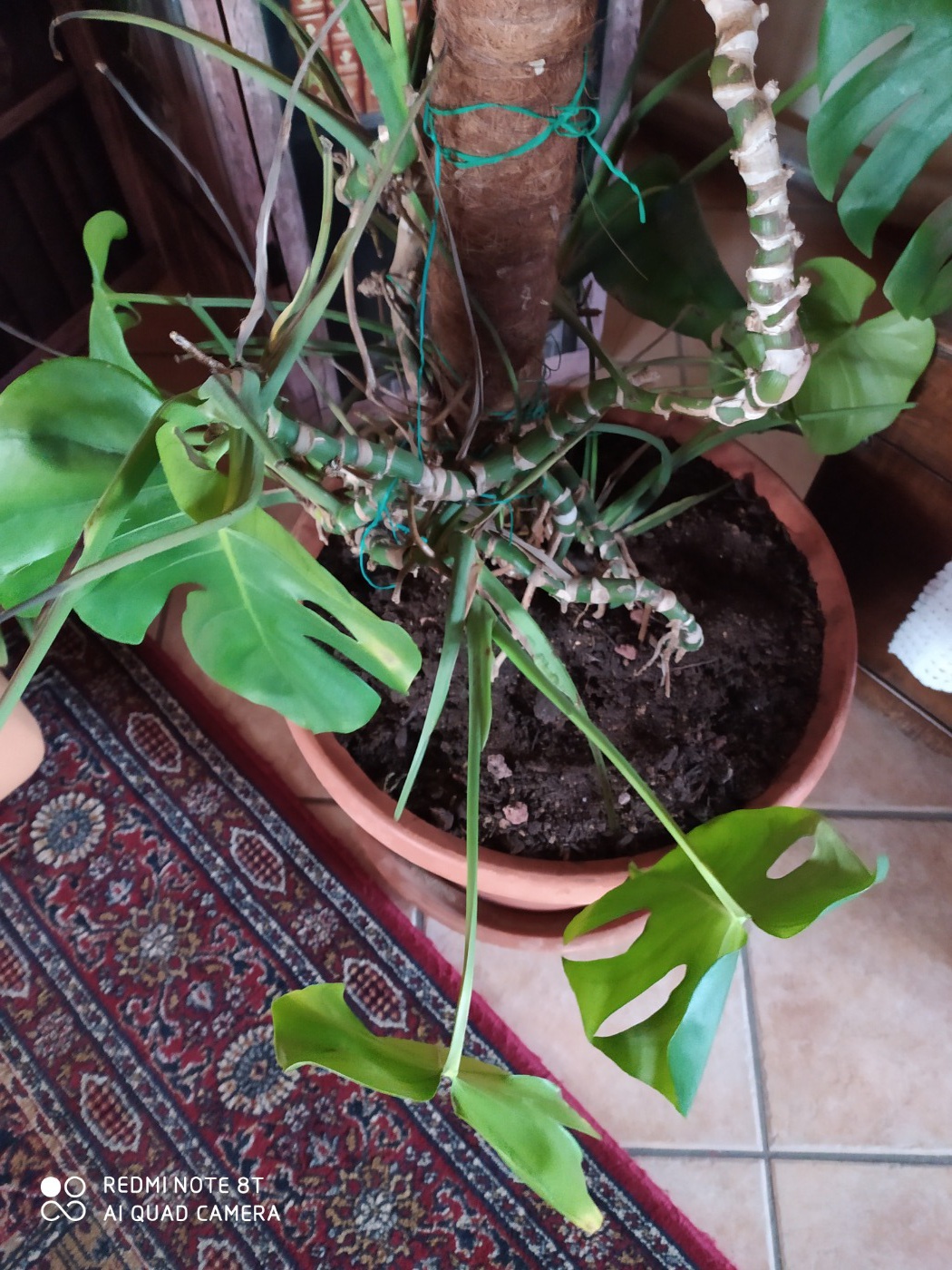 Ciao ragazzi ho questa Monstera,ha quasi 17 anni,quest' anno ho deciso di rinvasarla e portarla fuori,nn so da cosa è dipeso ma tante foglie sono seccate, le ho tolte,questa è la situazione attuale,l ho riportata in casa, xchè la temperatura si era abbassata la notte