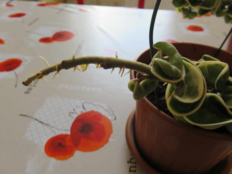Ciao a tutti! Ho finalmente potato la mio Hoya rovinata dal sole e ho fatto 3 talee apicali. Una in acqua che dopo 2 settimane ha fatto un bella radichetta e 2 in terra, con sacchetto per aumentare l'umidità. Le due talee in vaso hanno emesso entrambe una specie di radichetta bianca dalla parte interrata del fusto, che si e' infilata anch'essa nel terreno come per ancorarsi e una quindicina di piccole radichette bianche all'apice del fusto. Cosa vuol dire e cosa sono tutte quelle radichette fuori del terreno?