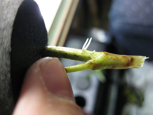 3)da talea di stelo. Da ogni nodo di stelo (i punti in cui si dipartono le foglie) spunteranno le radici: