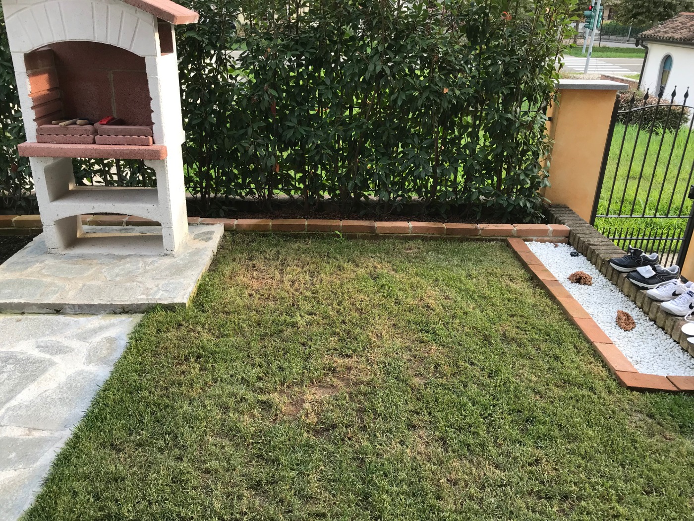vorrei togliere la parte di erba che si trova di fronte la siepe per una lunghezza pari al gradino del barbecue, quindi più o meno un metro!