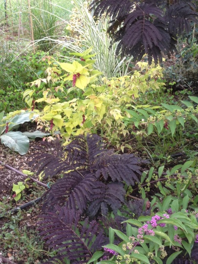 Oggi nel nostro demonstration garden (work in progress ho appena iniziato a sistemarlo un mese fa :mrgreen: )...albizia cioccolato al centro ;-)