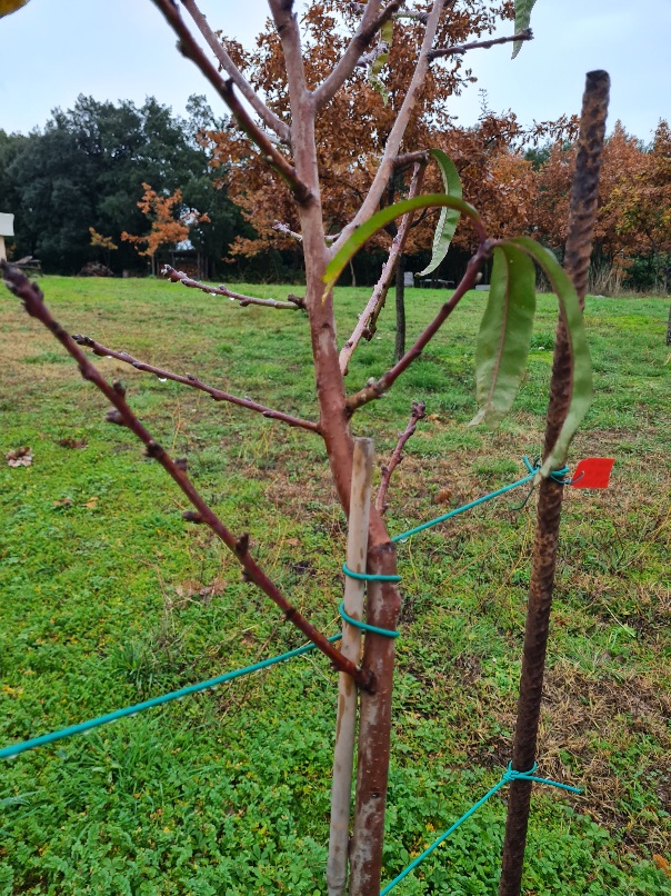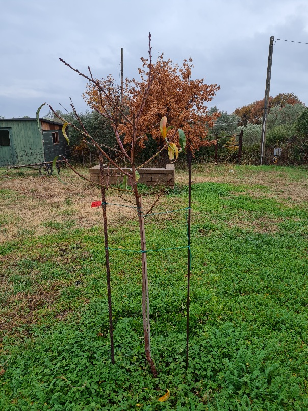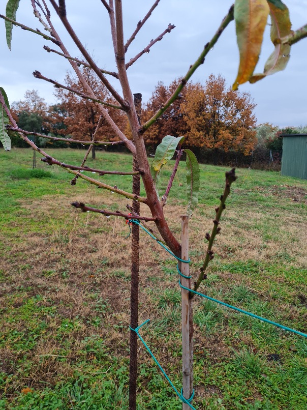 Buonasera a tutti. Forse qualcuno può aiutarmi. Metto sotto alcune foto di un pesco che ho messo a dimora a maggio di questo anno. L'ho lasciato stare fino ad ora, ma vorrei impostarlo per la classica forma a vaso. Consigli? Devo togliere l'astone centrale e lasciare 2-3 branchette che poi saranno le mie branche principali? In che punto tagliereste voi? Mi manca anche una branchetta che mi occupi un lato della pianta, spero lo vediate dalle foto, consigli? Grazie mille, ho paura di fare danno