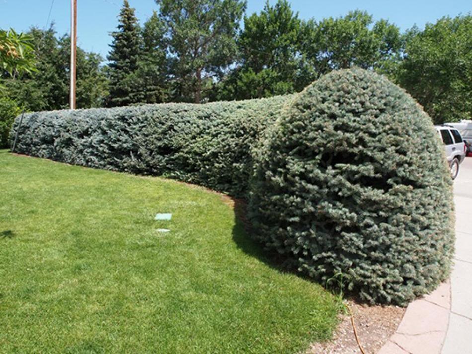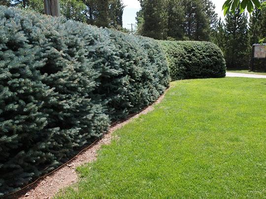Il pino argentato, Picea pungens, chiamato anche 'Abete del Colorado' o 'Abete delle Montagne Rocciose' per creare siepi sempreverdi, deve essere messo a dimora giovane, quindi con una spesa contenuta, a una distanza di 120 cm circa, e poi potato più vote ogni anno, ogni volta che emette nuova crescita. Infine è da mantenere alto 250 cm a formare una siepe completamente impenetrabile (non dimentichiamo che gli aghi sono appunto pungenti :-) ), anche al vento, e quindi siepe frangivento. E 'anche un ottimo habitat per la fauna selvatica: molti volatili locali ameranno la protezione che offre questa siepe.
