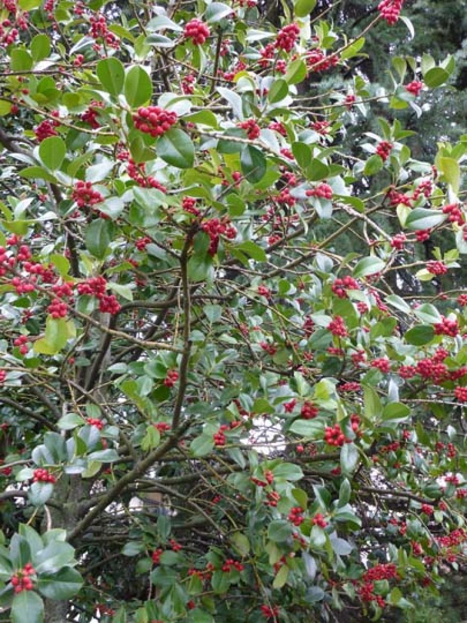 Agrifoglio (nella foto qui sopra) e bacche di rosa: