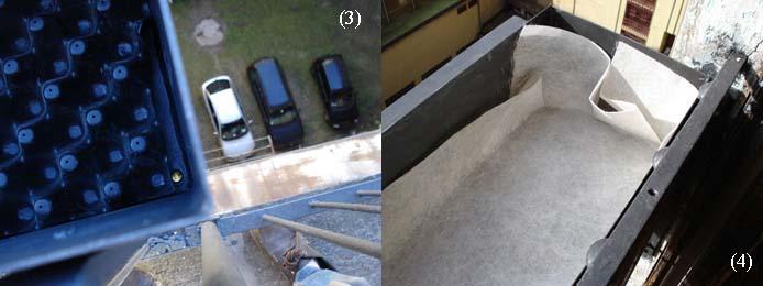 (3) foro di drenaggio e vaschette di riseva idrica (4) telo filtrante