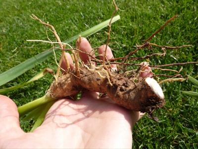 Allora, per prima cosa estraete un ammasso di rizomi con una forca o una vanga.