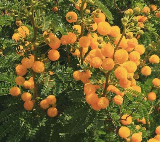 A partire dal tardo inverno, produce una grande varietà di gonfi, fragranti, fiori giallo arancio. Continua poi a fiorire per tutto l'anno, anche se a più bassa densità. Produce frutti secchi racchiusi in baccelli legnosi. I semi sono attraenti per gli uccelli e altri animali selvatici. Spinosa sul tronco e sui rami da non piantare in zone di passaggio o dove giocano dei bimbi.