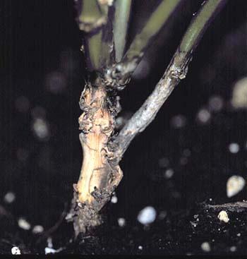 Botritys (cinerea) su stelo di poinsettia - Foto © plant-disease.ippc.orst.edu
